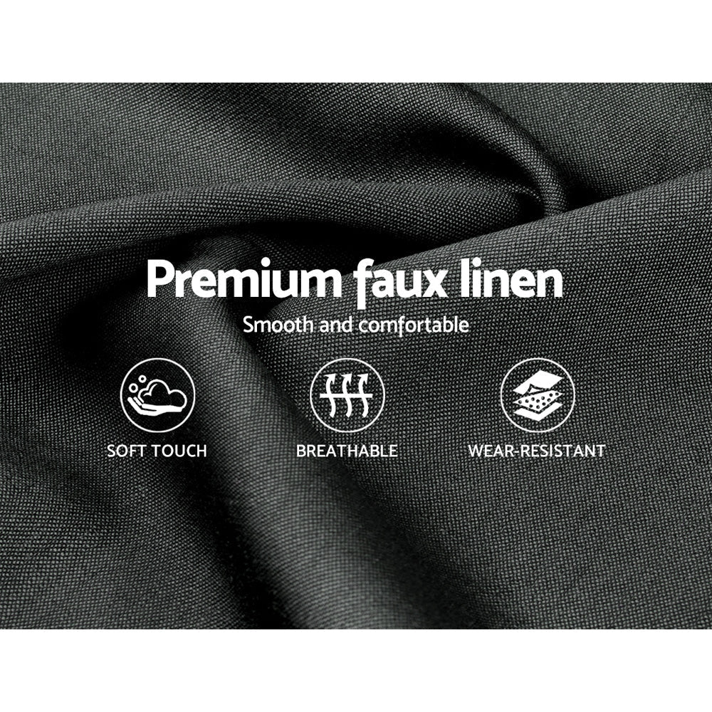 A good mattress certainly deserves an equally fine bed frame and base. And our Artiss Tino Bed Frame is just the perfect companion piece for your favoured mattress. With its exquisite modern lines, elegant finish and quality faux linen fabric upholstery, the bed frame is well-crafted with solid wooden slats that help distribute body weight evenly throughout the ensemble. The high-density foam within the fabric delivers generous padding while the fabric itself is also breathable and non-woven for longevity of use. Not least, heavy-duty metal connectors help keep the structure stable and firm even with robust use. Designed to fit standard-size mattresses effortlessly, our bed frame is guaranteed to give you pleasant dreams with every sleep.