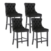 4X Velvet Bar Stools with Studs Trim Wooden Legs Tufted Dining Chairs Kitchen