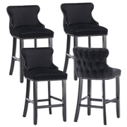 These modern and comfortable velvet bar stools are upholstered in plush thickened velvet (280g) with high-density foam and extremely strong support to provide you with comfortable seating. 4 wooden legs with footrest for a sturdy look and the bottom of bar stools tipped with rubber pads to prevent the chair from sliding on and protecting your floors (wooden floor, marble floor, carpet, etc.)