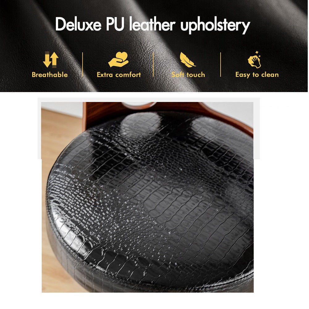 Designed to blend in with any environment, this bar stool serves the purpose of providing seating comfort along with a neat, simple design. Featuring an elegant wooden seat structure and beautiful?painted black gas lift lever, it will surely complement your modern d??cor. It also incorporates a quality powder coated?base with a croco PU leather padded seat providing long lasting furniture that offers maximum comfort. Contemporary and innovative, it's a beauty with assured quality.