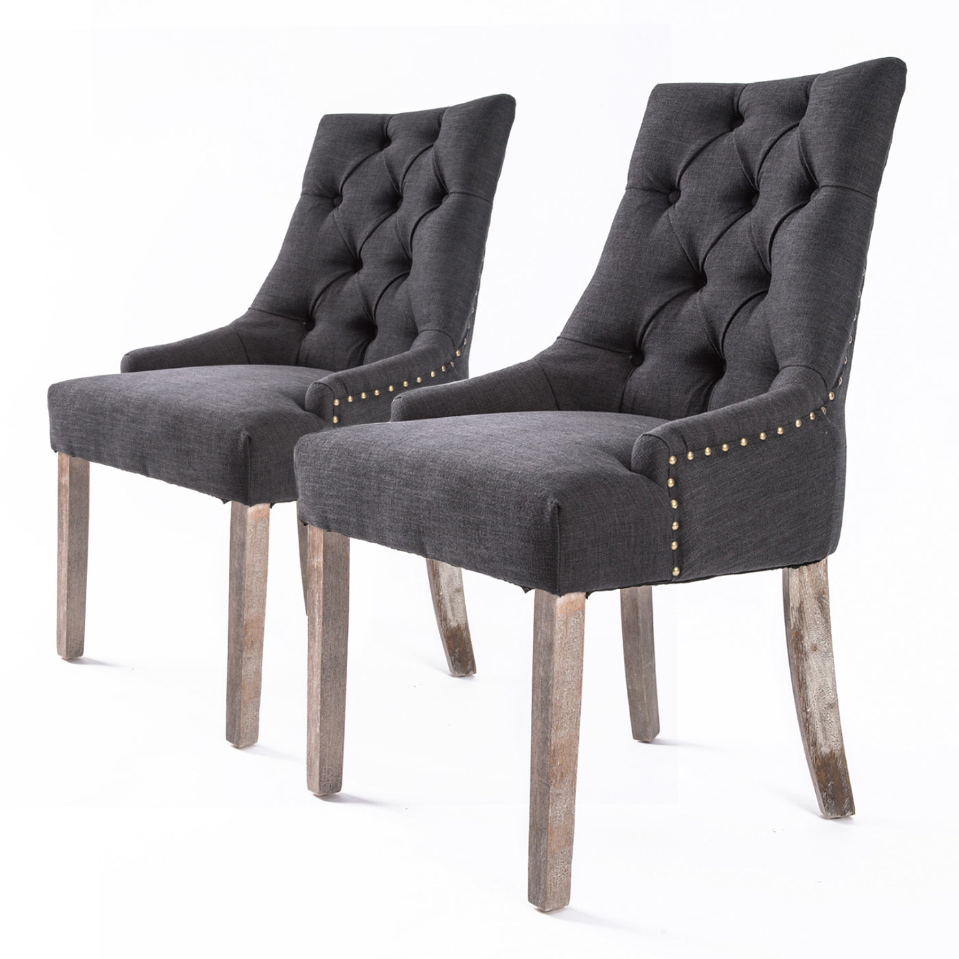 Padded with 13cm high resilience foam, this thick cushioned seat is wider than normal chairs. All these features will no doubt give top maximum comfort. Elegant upholstered, together with a deep tufting design and brass studding on edges, this French provincial style chair will definitely give you and your family and friends additional enjoyment, comfort and pleasure.