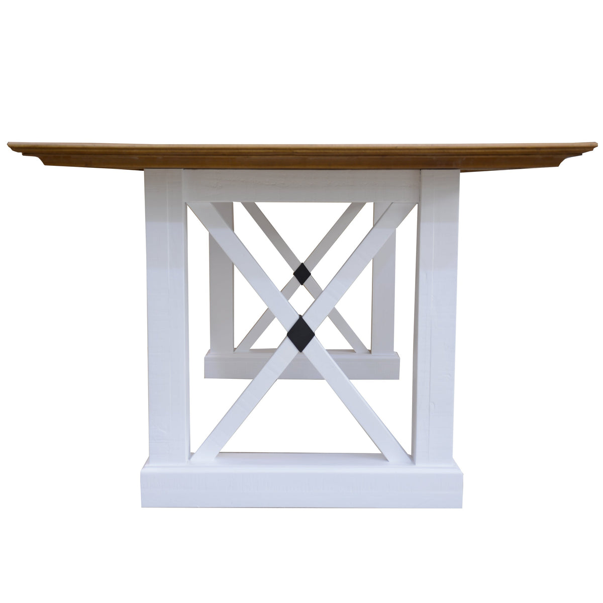 A dining area has three important elements: the food, the company, and the overall ambience. While you take care of the first two elements, leave the third one to this beautiful dining set. It is the ultimate ambience creator.The entire set is crafted in the Hampton style and is multi-coloured, so it looks beautiful in a variety of interior decor styles.The 8-seater dining table with robust, thick legs is complemented with white, cross back chairs, upholstered in soft, grey-coloured fabric. The table looks exceptionally beautiful as its construct features two colours - a brown chocolate top and a white base in a stain finish. The set is made of the best-quality Pine Wood, obtained in a sustainable manner. The wood makes the table and chairs comparatively lighter, yet strong, durable, and heat resistant. A one-year warranty is included with the simple-to-assemble dining set. Only the dining table needs to be assembled in the set.