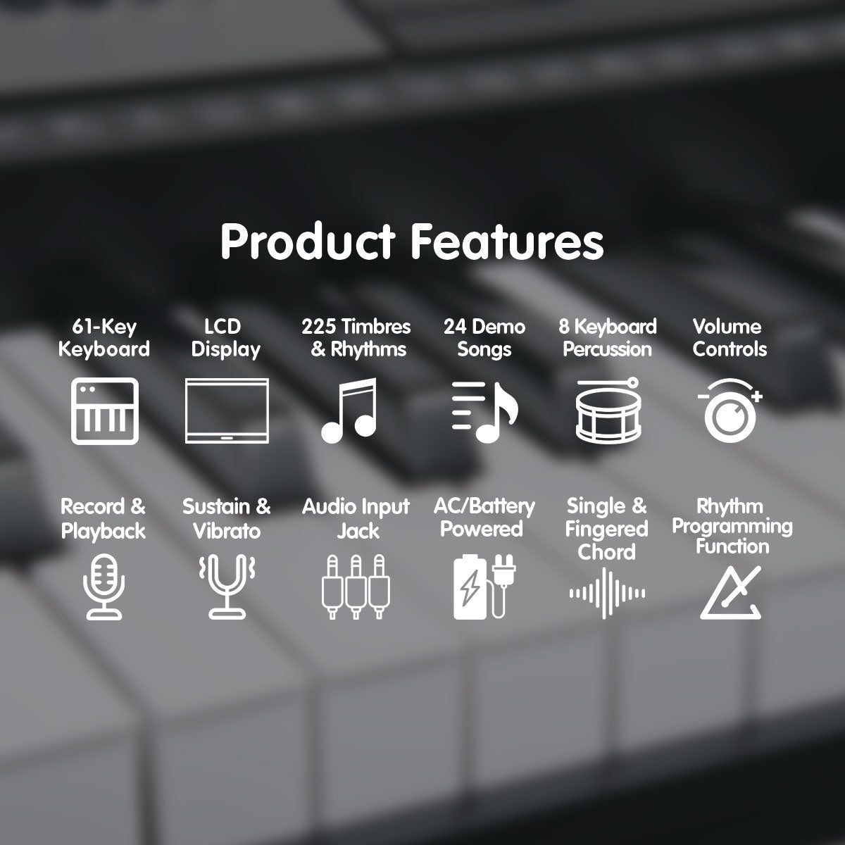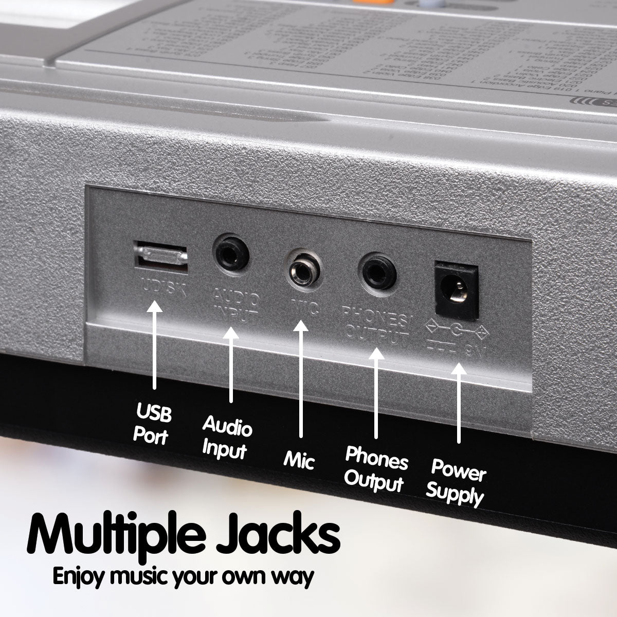 61 Keys Electronic Keyboard Piano with Stand - Silver
