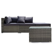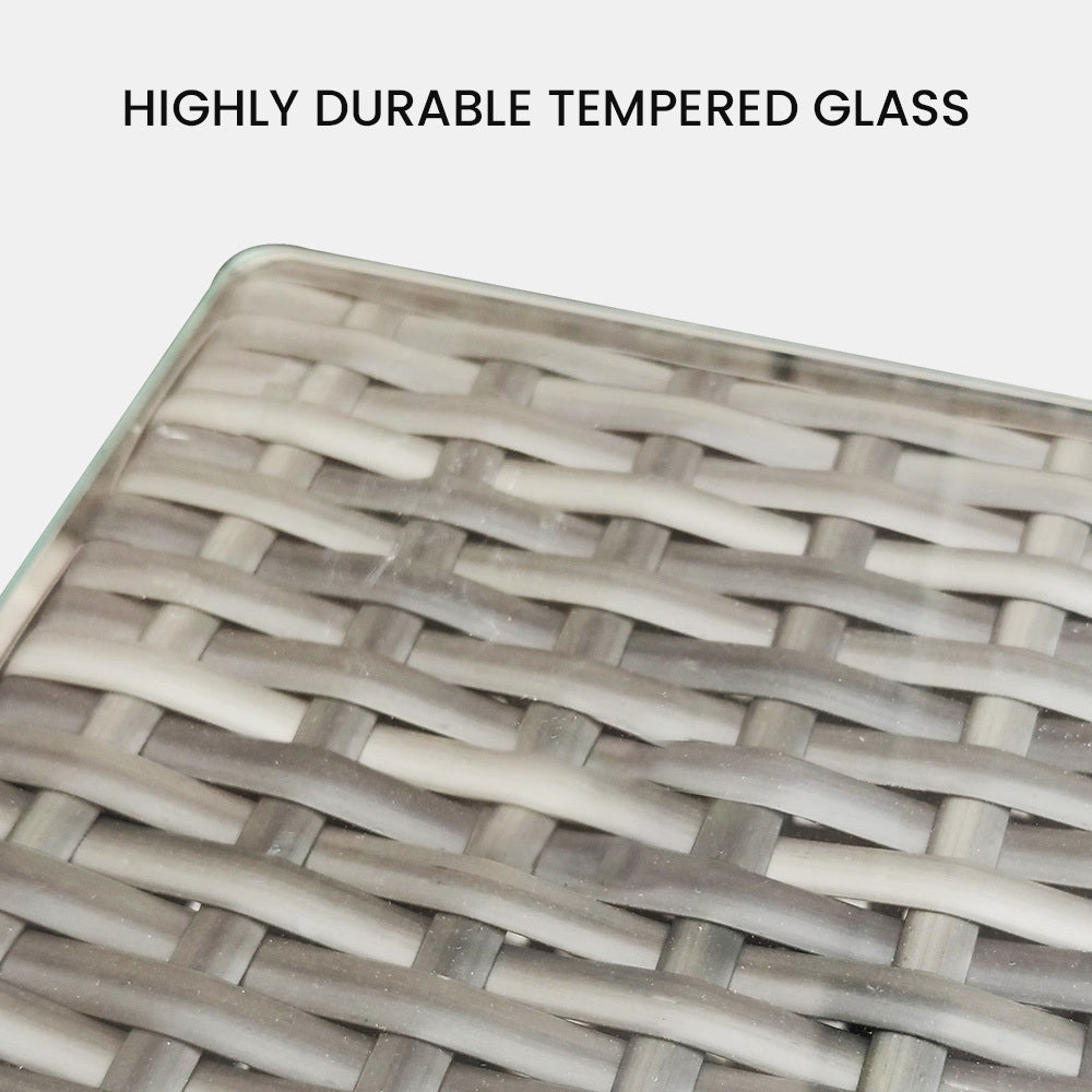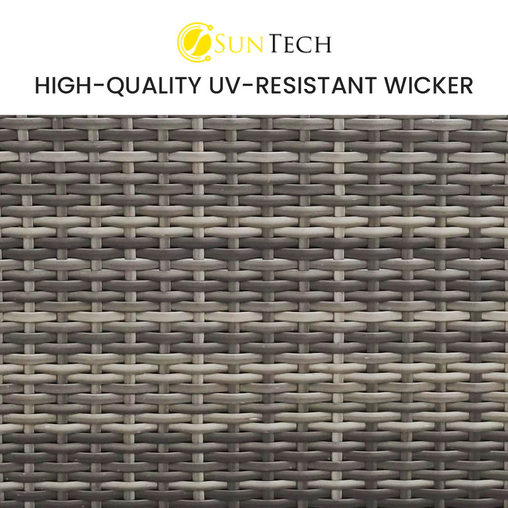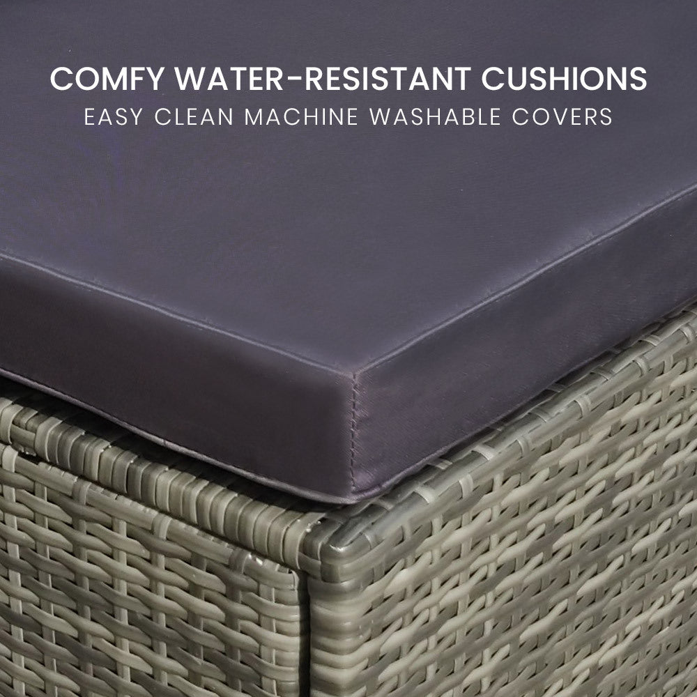 The set includes ultra-comfy 8cm thick water-resistant seat cushions, generous backrest cushioning and a premium throw cushion. . The high-quality UV-resistant handwoven Suntech wicker in Marl Grey weave has a premium natural textured look. With a modular design comprising a sofa, one corner sofa, an ottoman, plus a coffee table with tempered glass table top. You can set it up in whatever configuration works best for you, making this London Rattan outdoor lounge setting a great addition to any outdoor space.