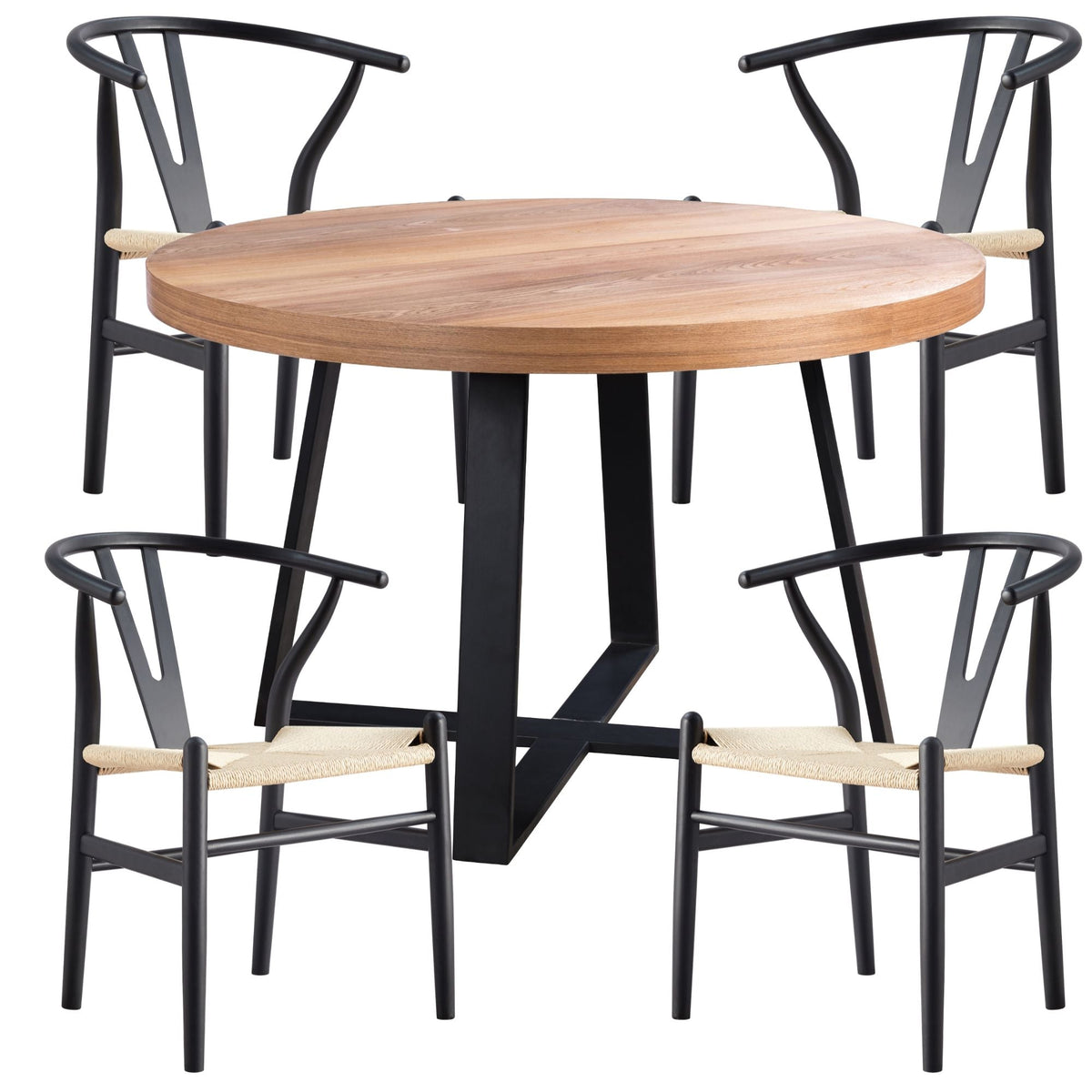 5pc 120cm Round Dining Table Set 4 Wishbone Chair Elm Timber Wood