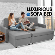 3-seater Corner Sofa Bed With Storage Lounge Chaise Couch - Light Grey
